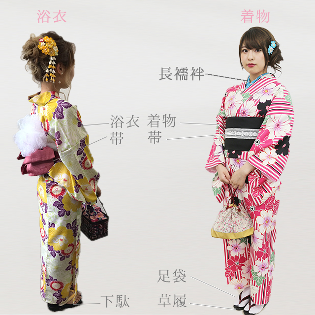 ยูกาตะไม่เป็นทางการ (Casual) ส่วนกิโมโนเป็นทางการ (Formal)