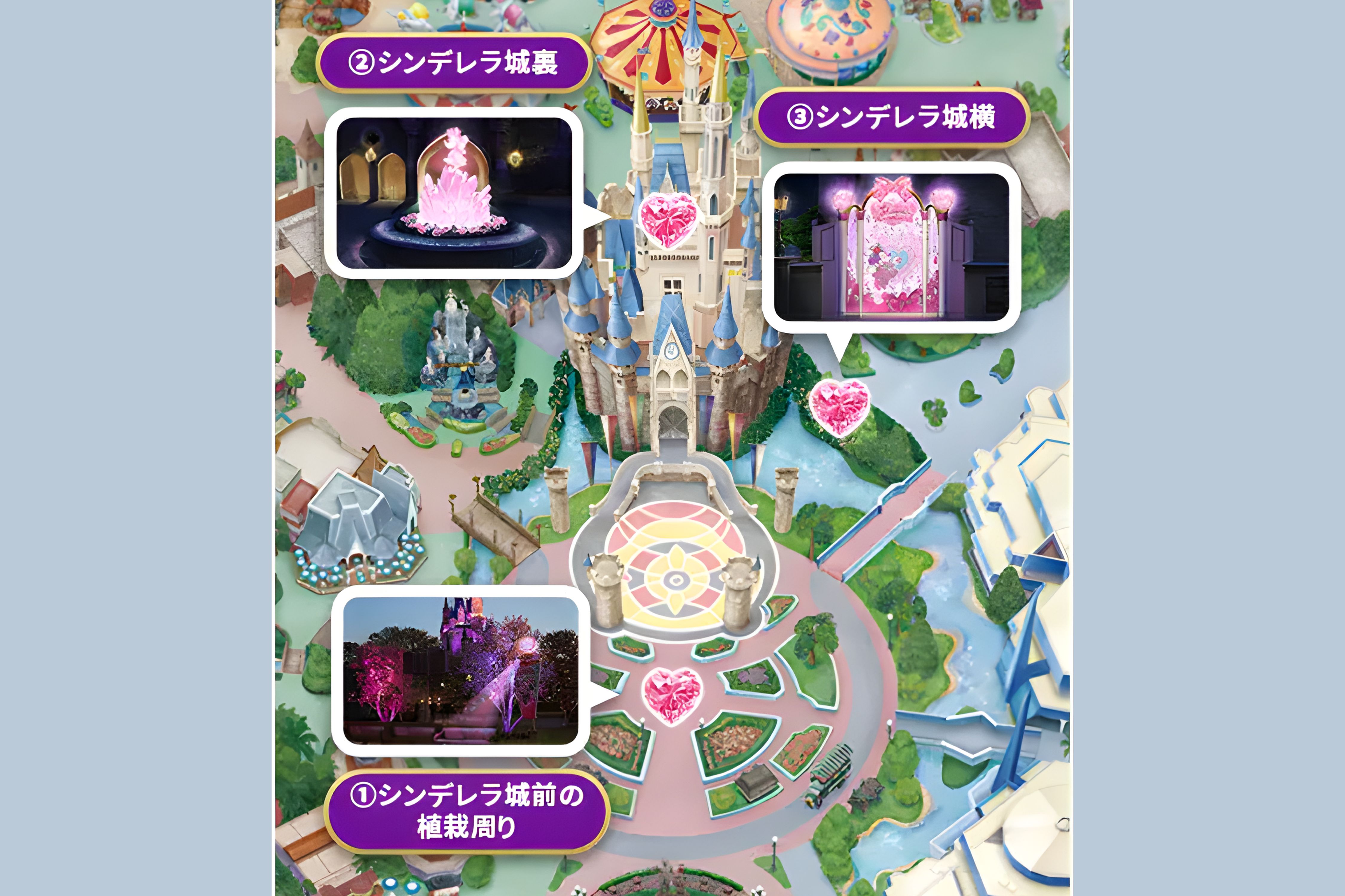 ในปาร์คตกแต่งเต็มไปด้วยสิ่งที่มินนี่ชื่นชอบ สร้างโลกแห่งความน่ารักสดใสที่แตกต่างจากสวนสนุกแบบเดิม สามารถเพลิดเพลินไปกับสิ่งต่างๆ เช่น อนุสาวรีย์ริบบิ้นขนาดใหญ่และพรมลายจุดบนพื้นลานหน้าปราสาทซินเดอเรลล่า